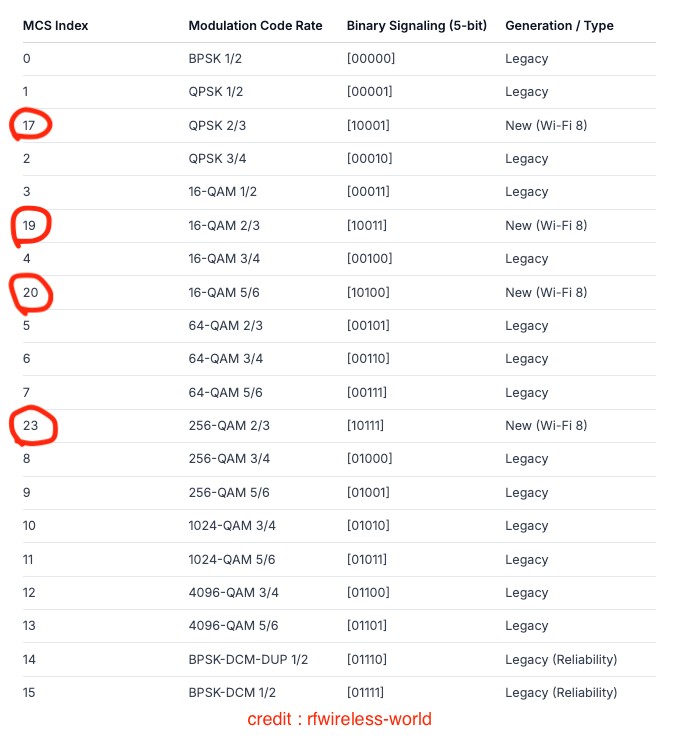 มีการเพิ่ม MCS index จากเดิม ที่มี 0-15 โดยเพิ่ม index 17, 19, 20 และ 23