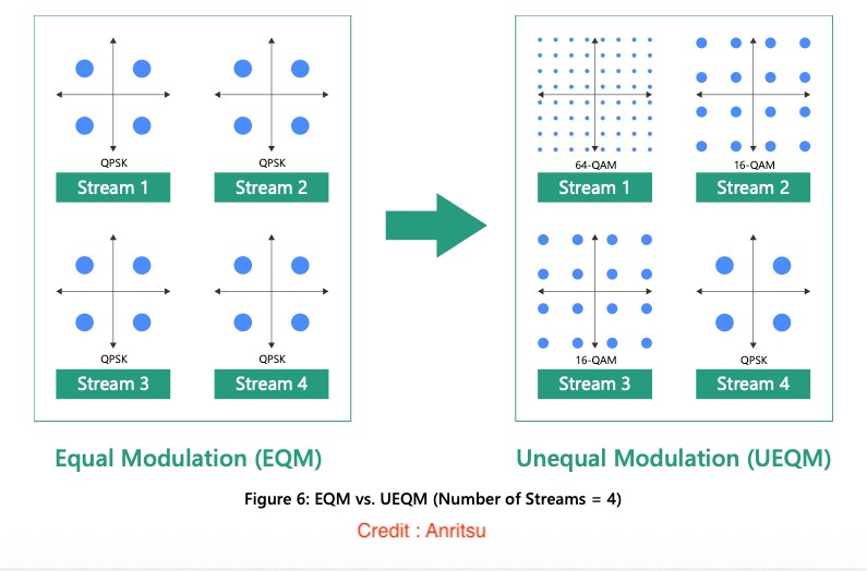 ด้วย UEQM จะทำให้แต่ละ stream สามารถส่ง MCS ตามที่แต่ละ stream ส่งได้ ทำให้การใช้งาน spectrum ทำได้มีประสิทธิภาพเพิ่มขึ้น